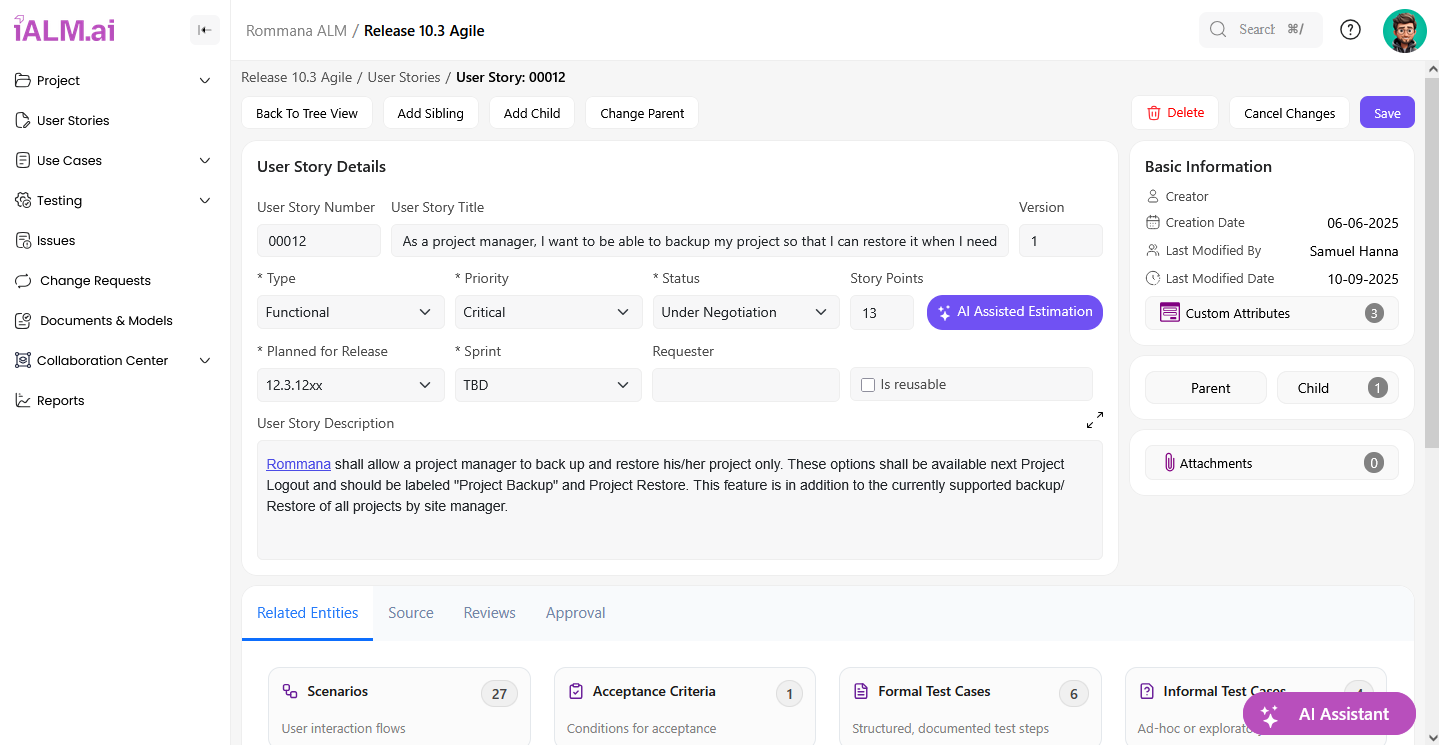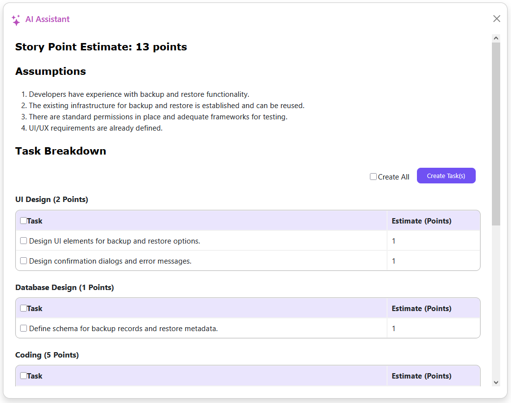 Let our Ai Assistant help your team have a better control over the quality of user stories and requirements to help build best of class systems that meets your customer needs 100% of the time.
